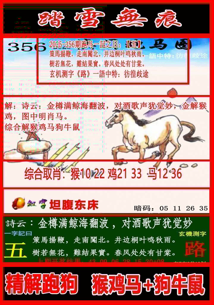 356期:⑨肖 【蛇鼠虎兔猴牛马羊狗】 开??准